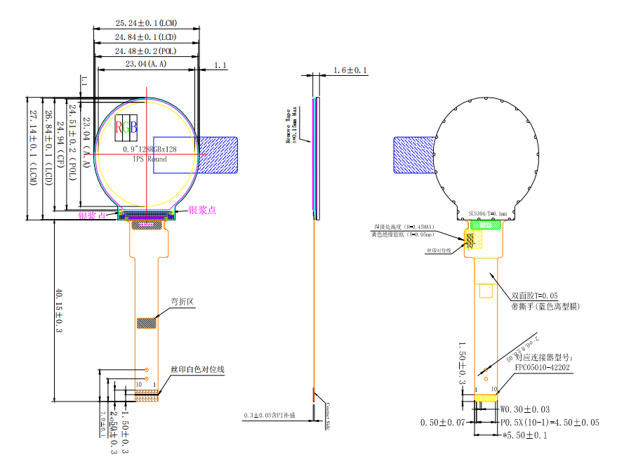 GL090TFT10A is a color round active matrix full IPS round TFT LCD display thin film transistor(TFT)liquid crystal display(LCD)that uses amorphous silicon TFT as a switching device. This TFT LCD has a 0.9-inch diagonally measured active display area with (128 horizontal by 128 vertical pixels)resolution. This module is composed of a TFT LCD Panel, driver ICs, FPC, and a Backlight unit.