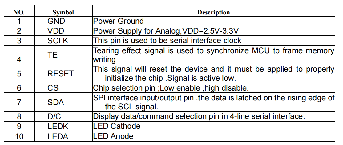 LCM InterfaceSPI 4W