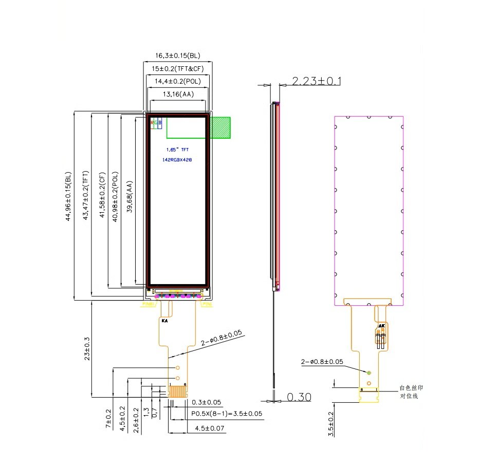 Outline Dimension16.3(H)* 44.96(V) *2.23(D)mm