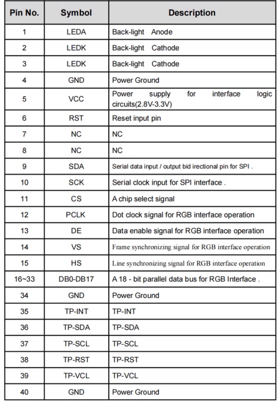 LCM InterfaceSPI+24BIT RGB