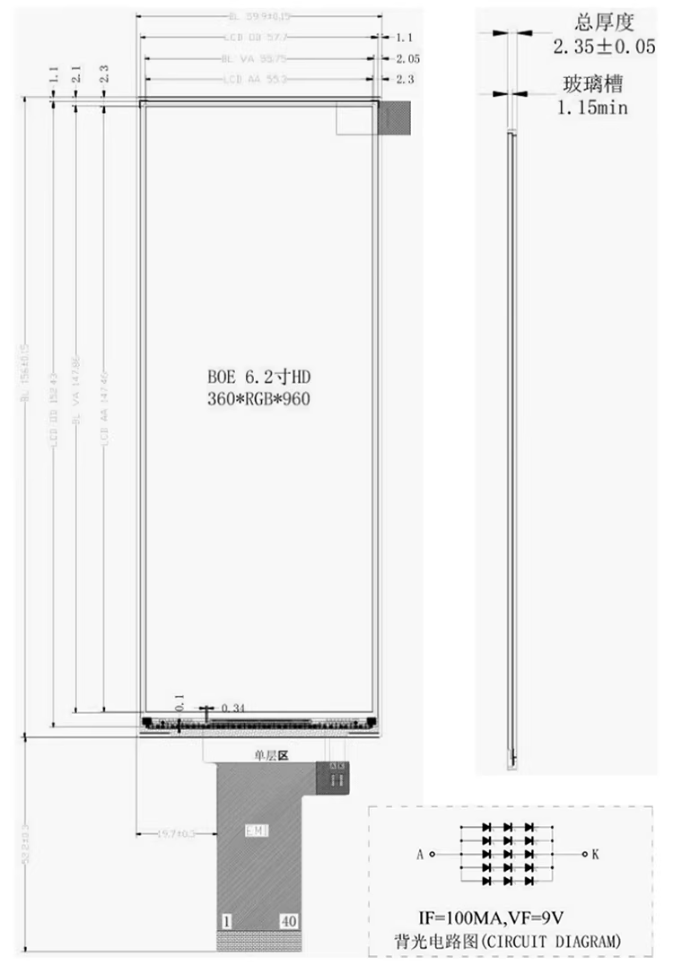 Display model GL620TFT11A is a color-active matrix thin-film transistor(TFT)liquid crystal display(LCD) that uses amorphous silicon TFT as a switching device. This TFT LCD has a 6.2inch diagonally measured active display area with (360 horizontal by 960 vertical pixels)resolution.